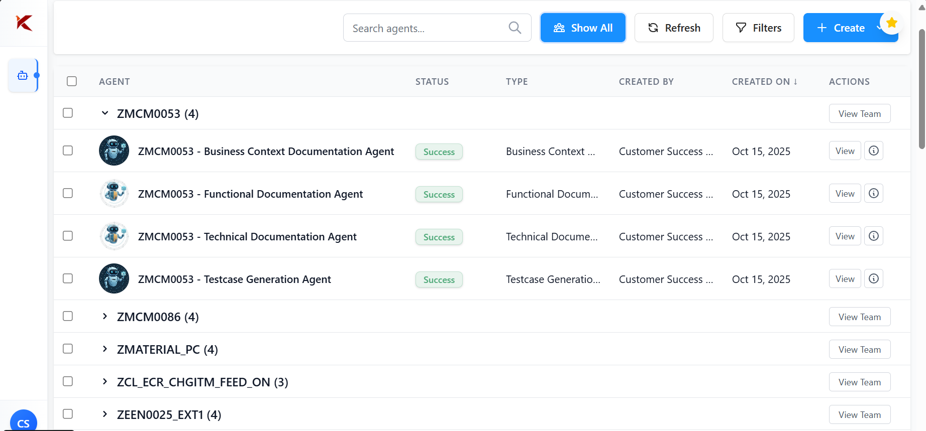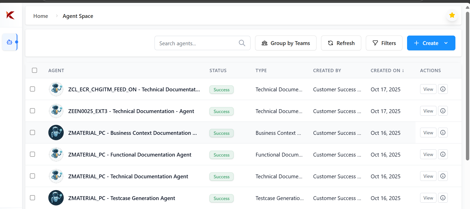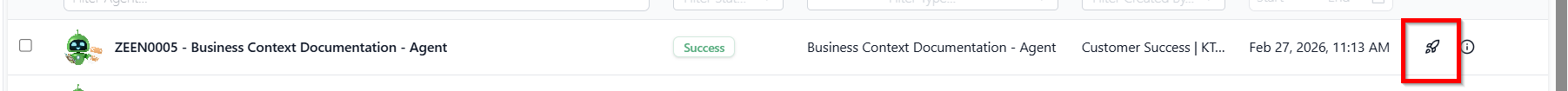 - Click on the launch icon for the respective project to access the Agent Space.