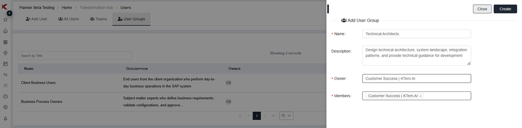 Hub → Users → User Groups