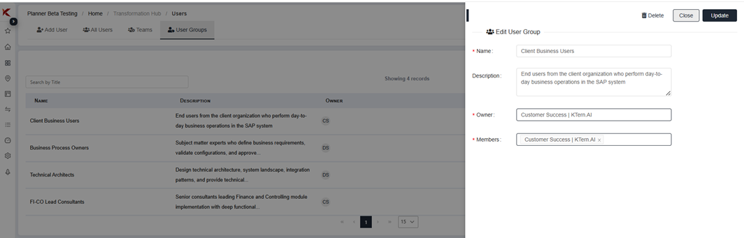 - Deleting a User Group requires reassigning all task