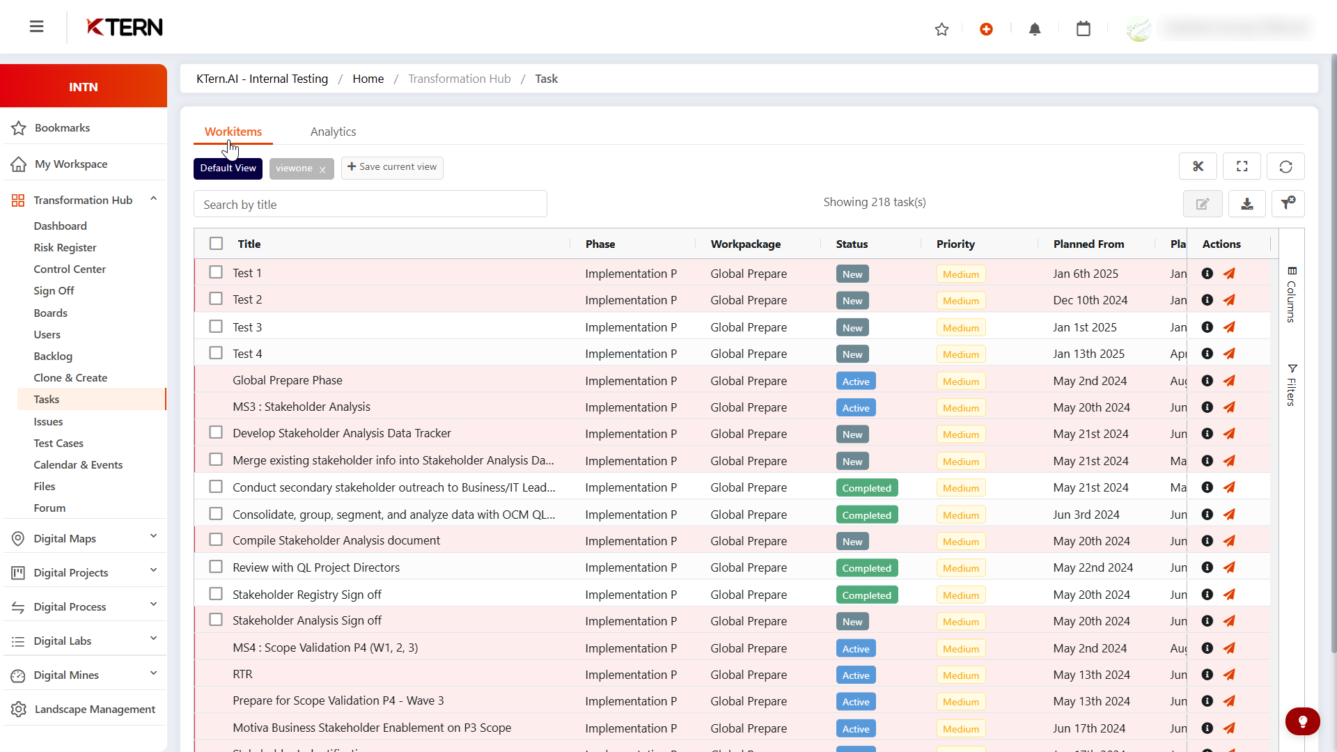 - Navigate to the Workitems tab to view all tasks assigned to various stakeholders.