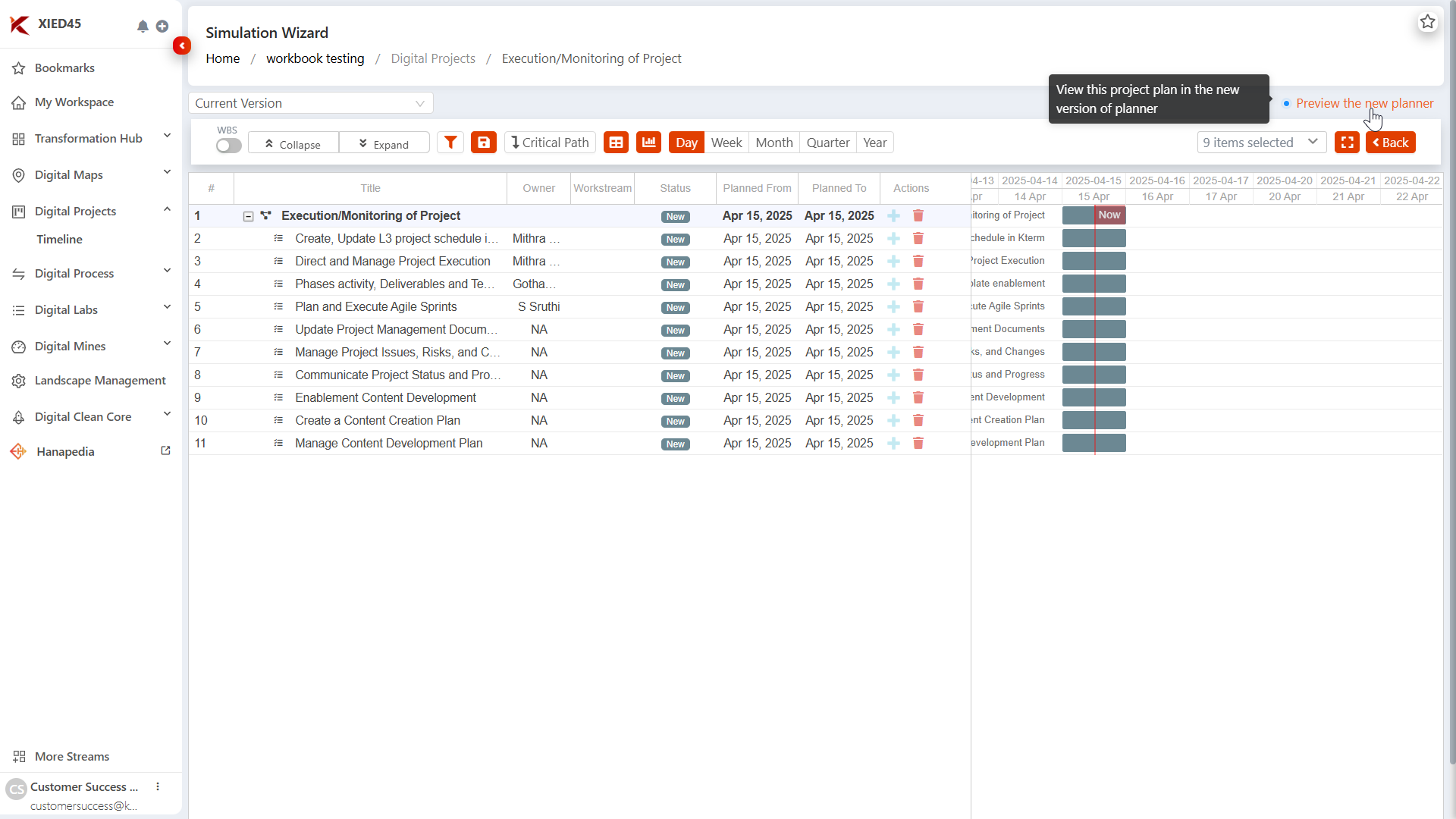 - Launch the desired work package and click “Preview the new planner” to access the Gantt view.