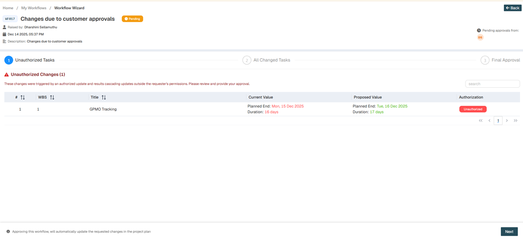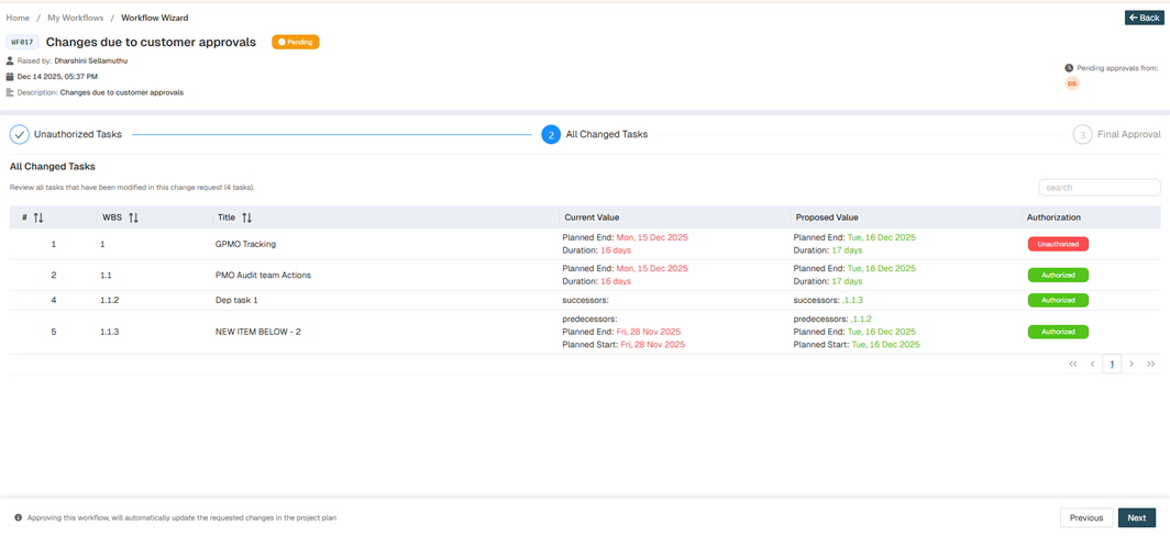 all tabs: Unauthorized Tasks → All Changed Tasks → Final Approval